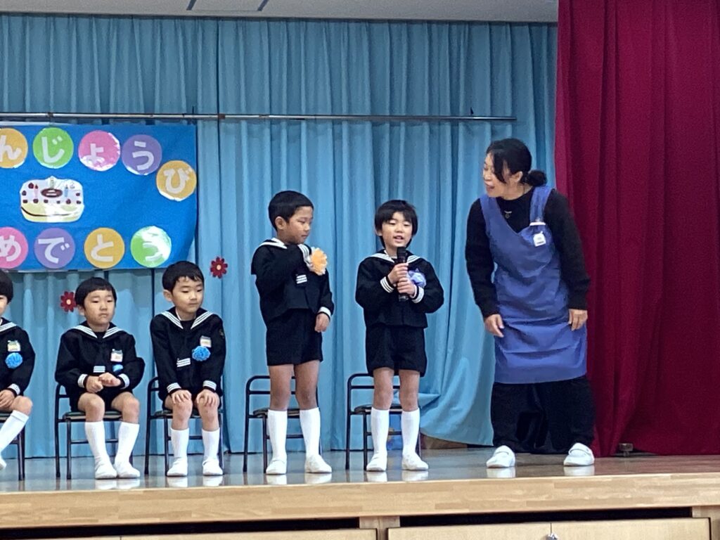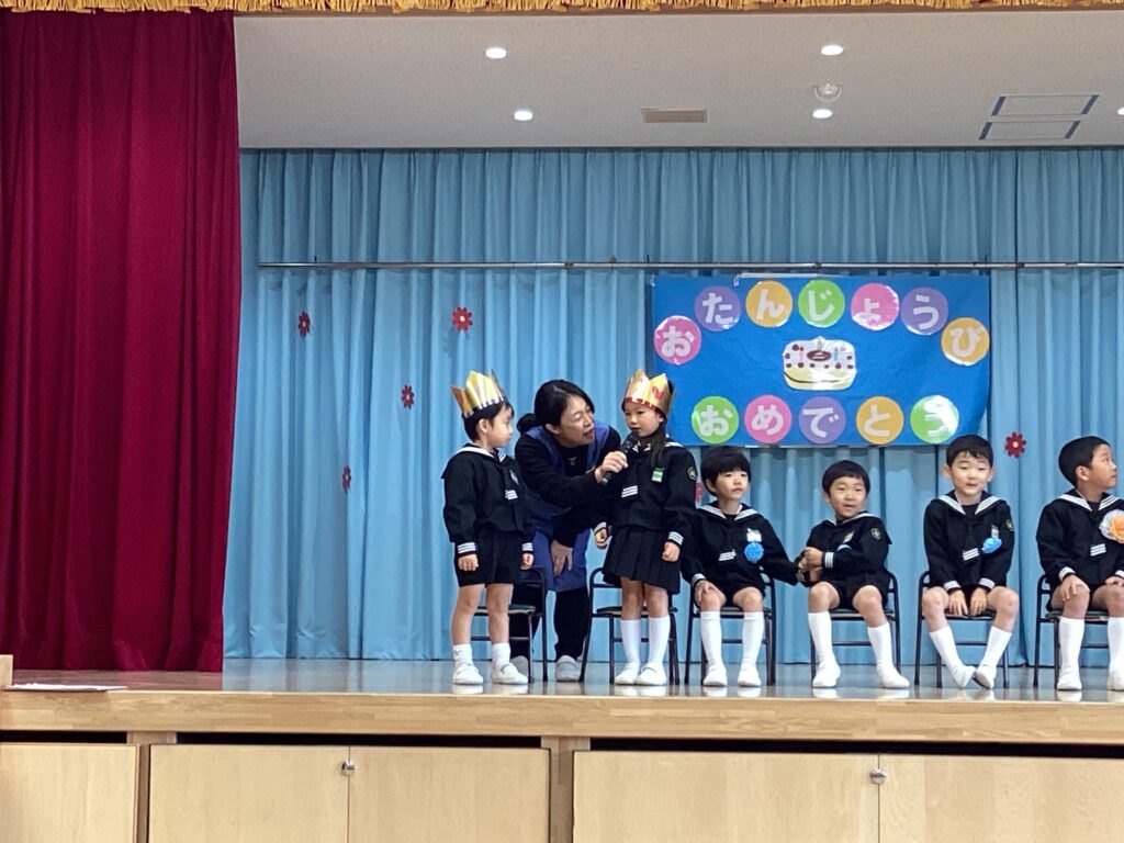 朝の寒さや園内の木々の様子から、少しずつ冬の気配が感じられるようになりました。少し遅くなりましたが、11月生まれのお友だちの誕生日会の様子をお伝えします。