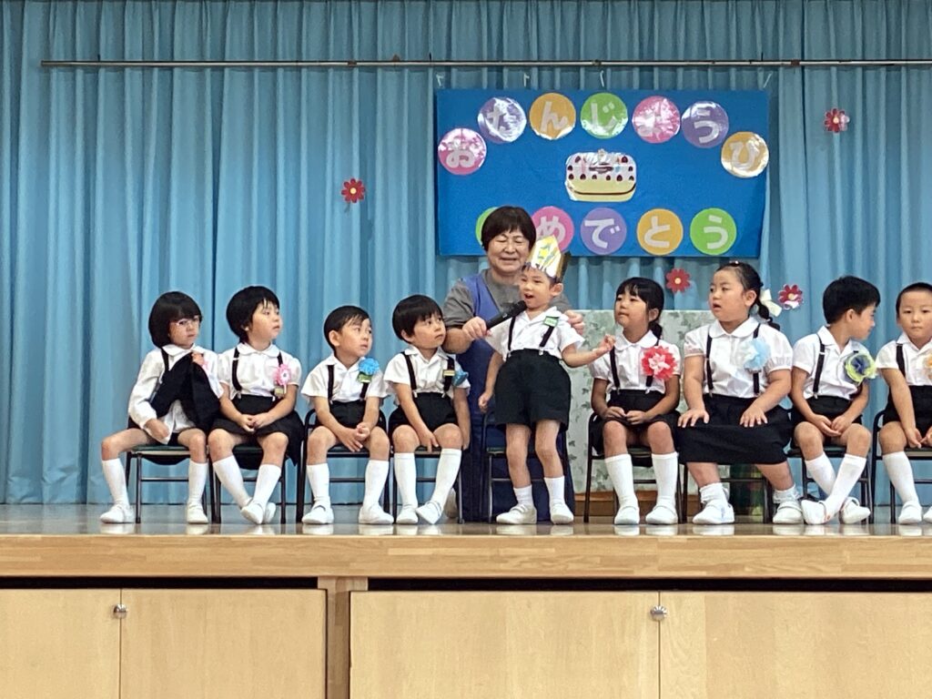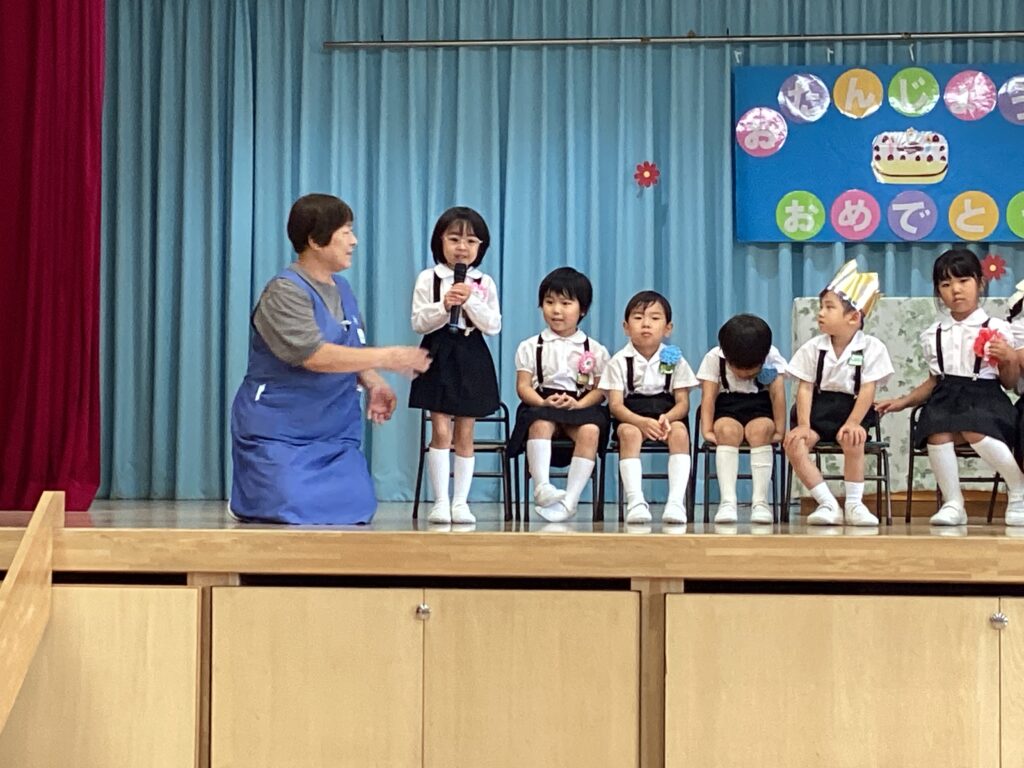 どの学年もインタービューに張り切って答えてくれました。年少さんは、好きな食べ物は?野菜やアイスクリームを教えてくれました。年中さんは、大好きな遊びは?鬼ごっこや虫取りがブームらしいです。年長さんは、大きくなったらなりたいものは?お父さんのお仕事に憧れている子もいましたよ。