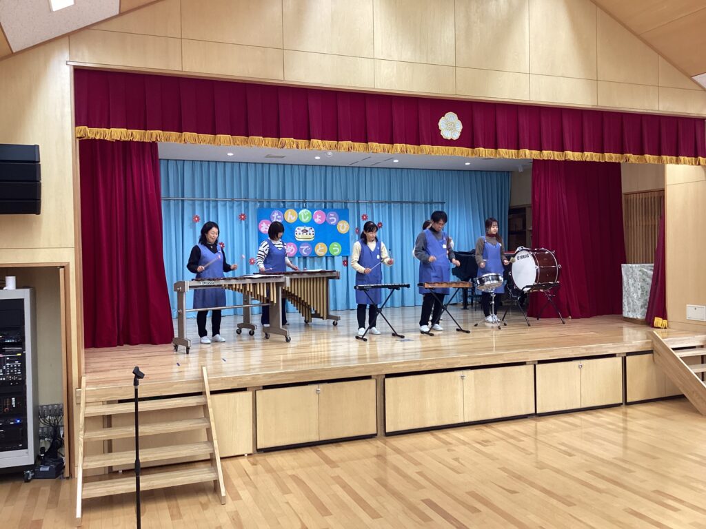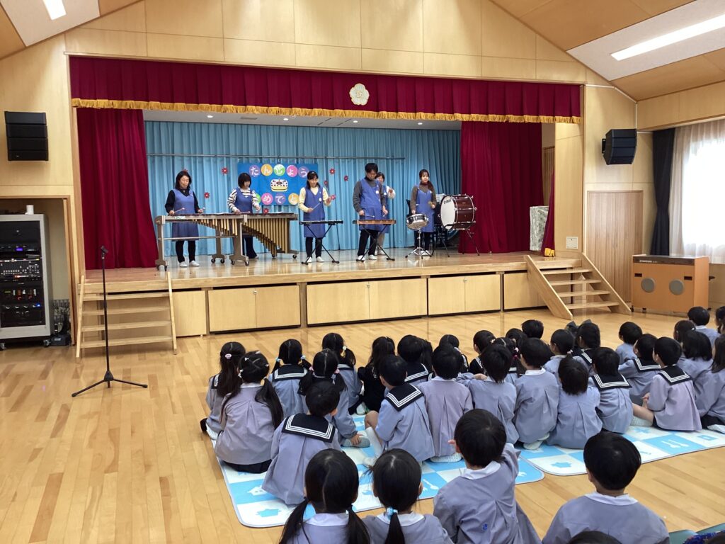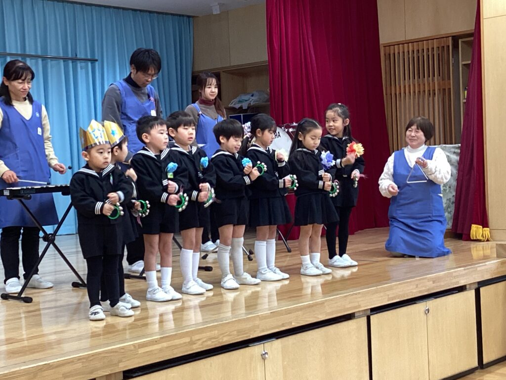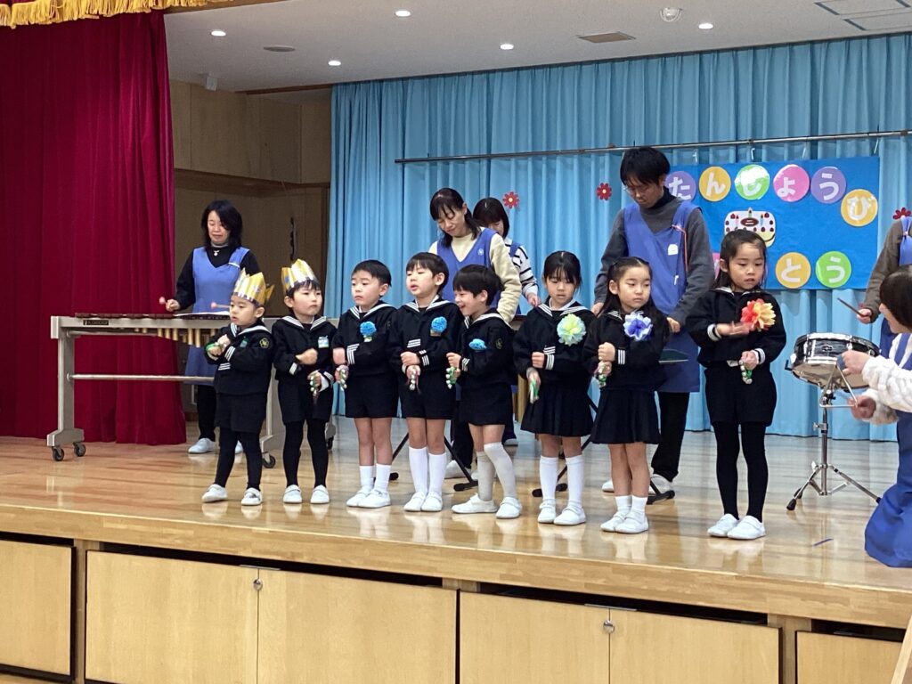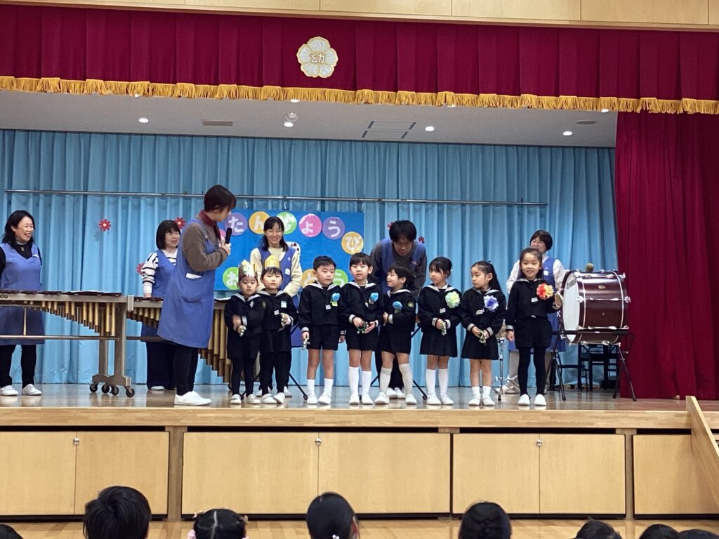 どんな楽器を使ったのか、先生たちからの紹介の後はお誕生日のお友だちも参加して演奏しました。
