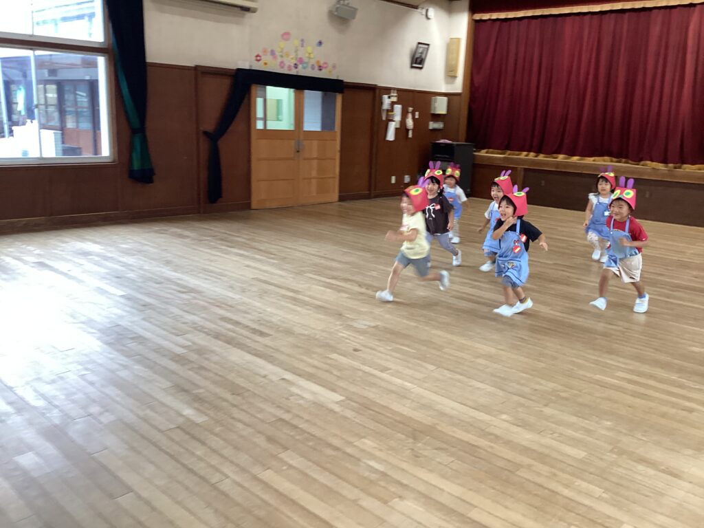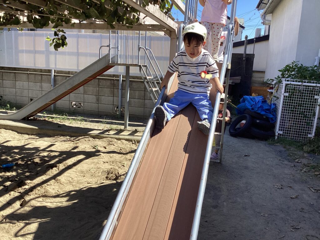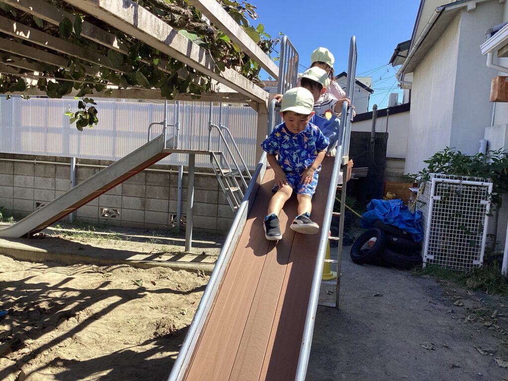 暑いですが、少しだけ園庭で一緒に遊ぶだけで、楽しくなります。