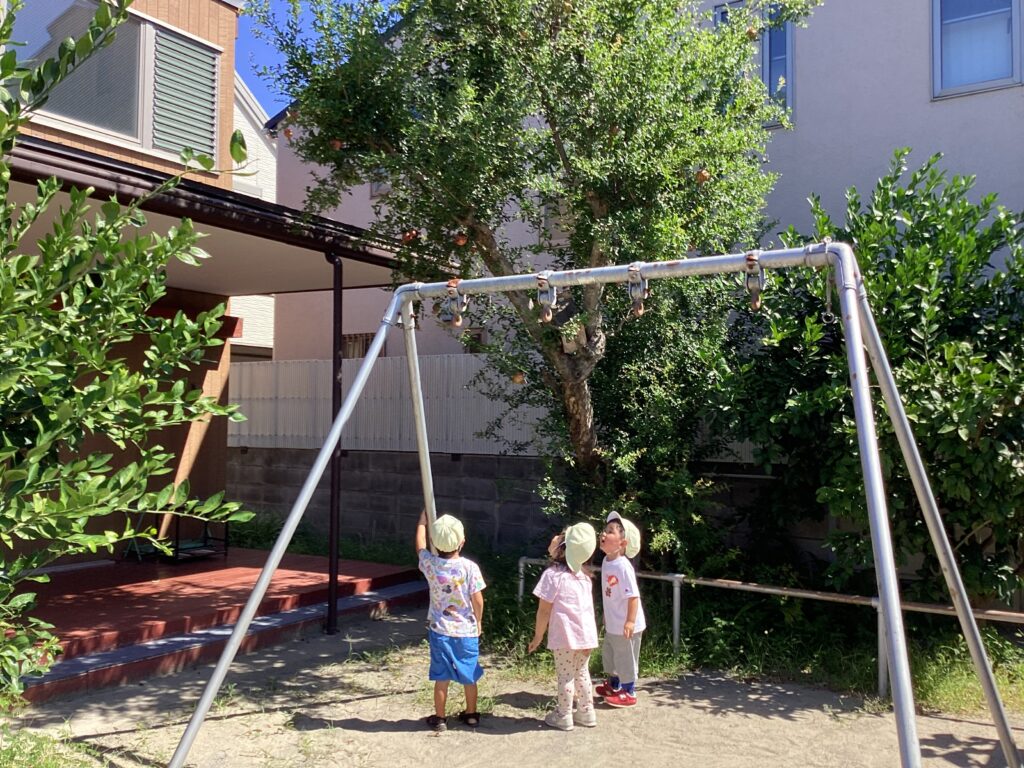 アゲハ蝶を見つけると、逃がしたちょうちょさんかな?と自然と嬉しくなる子どもたち。