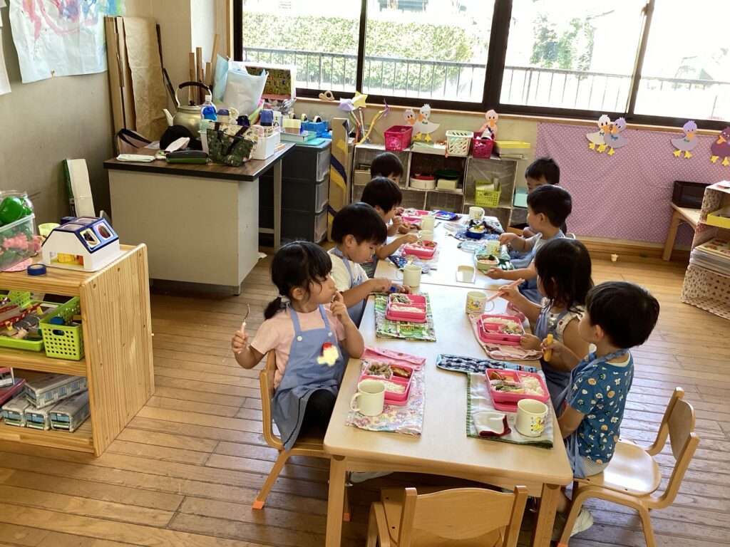 みんなで食べると美味しいね。自然と子どもたちが言い合ってニコニコ。皆んな沢山食べていました