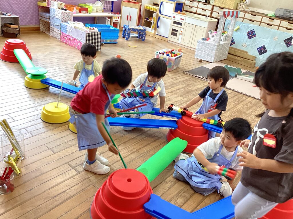 2学期が始まりました。子どもたちもドキドキワクワクの様子です。新しいお友達も増えて8人のあひる組。暑さに負けずに沢山遊びましょうね。はじめはドキドキしていたけれど、楽しいなと思うと、自然に集まってきます