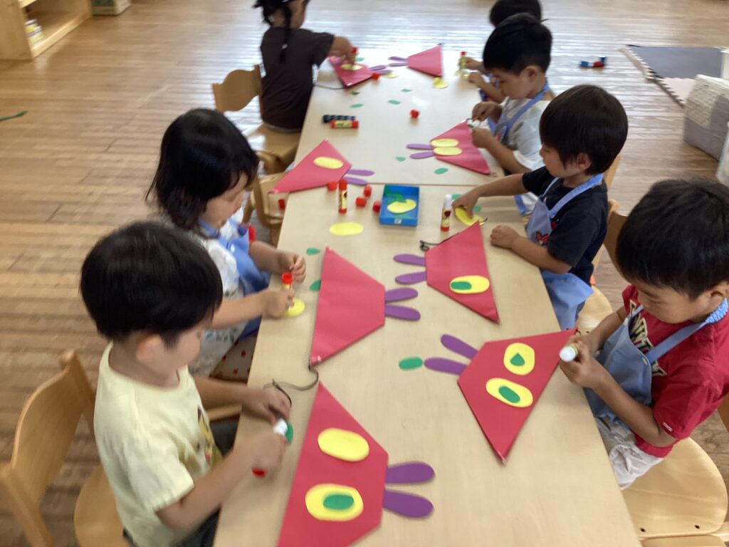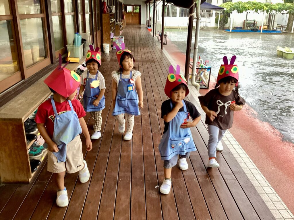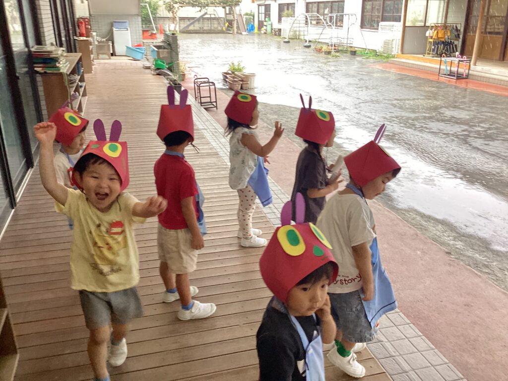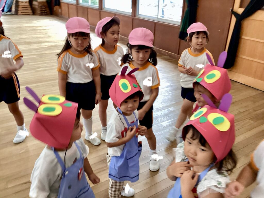 皆んなで青虫くんのお面を作りました