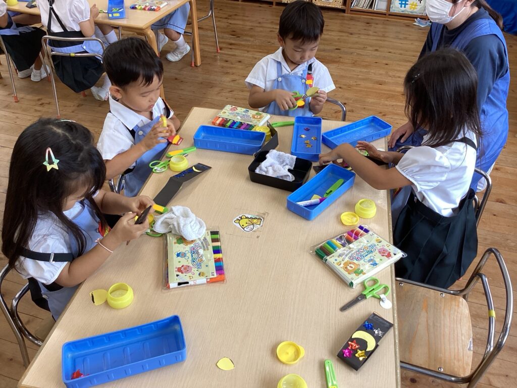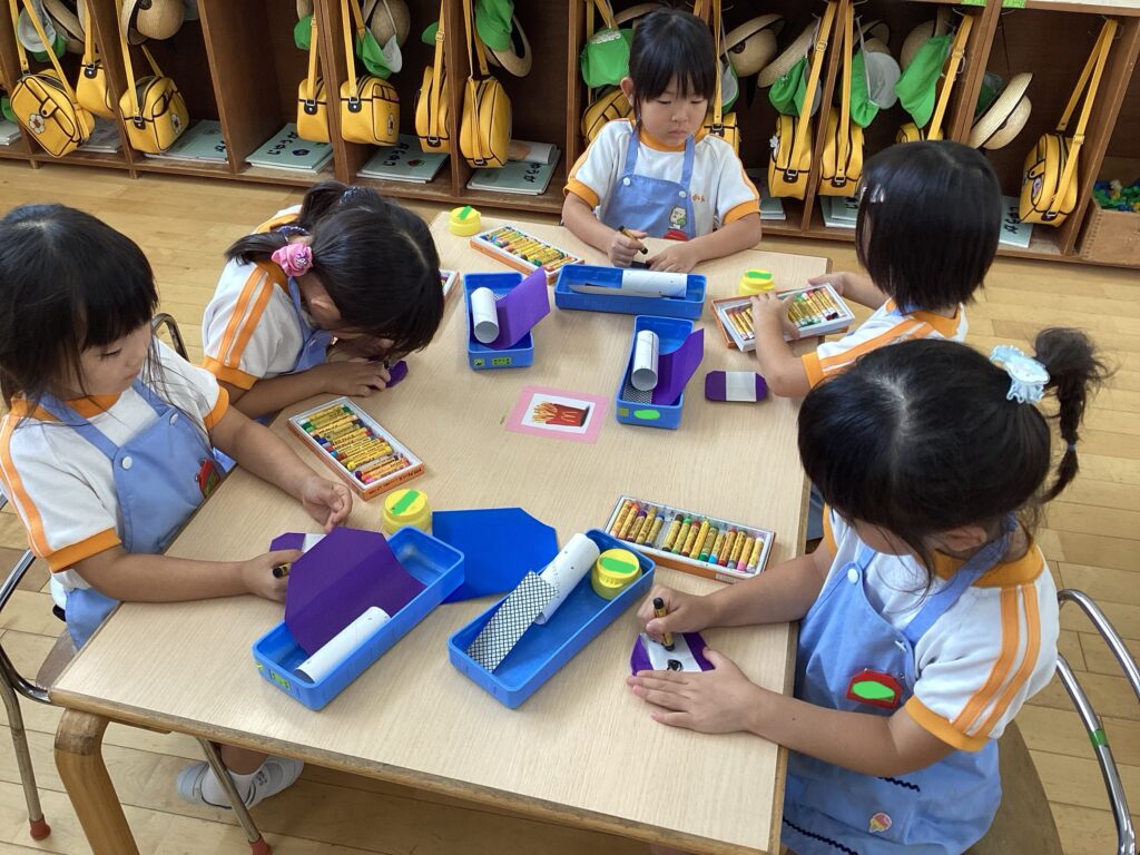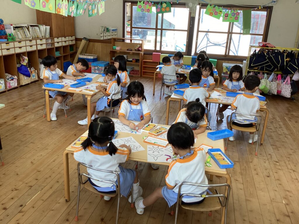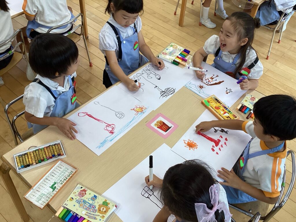 夏のカレンダーは、発表した後みんなで見せ合いっこをしました♪ お友達がどんな夏休みを過ごしたのか、、興味津々です。