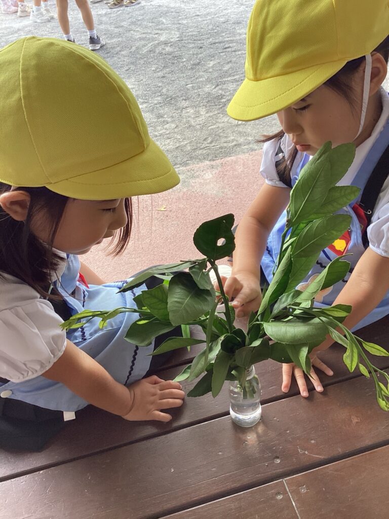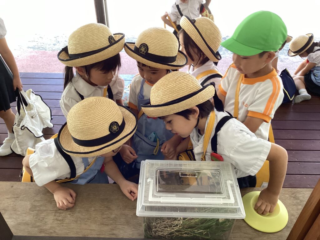 虫が大好きな子どもたち。アゲハ蝶の幼虫や、バッタを育てています。