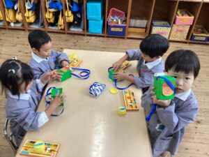 お友だちと一緒にみんなで遊んだり製作したりすることが楽しくなって来た子ども達です。