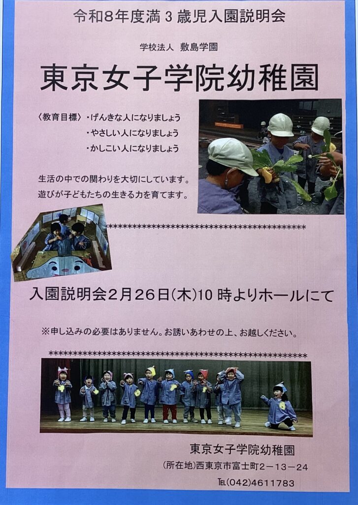 遊びと仲間の中で豊かに育つ幼稚園 東京女子学院幼稚園へようこそ